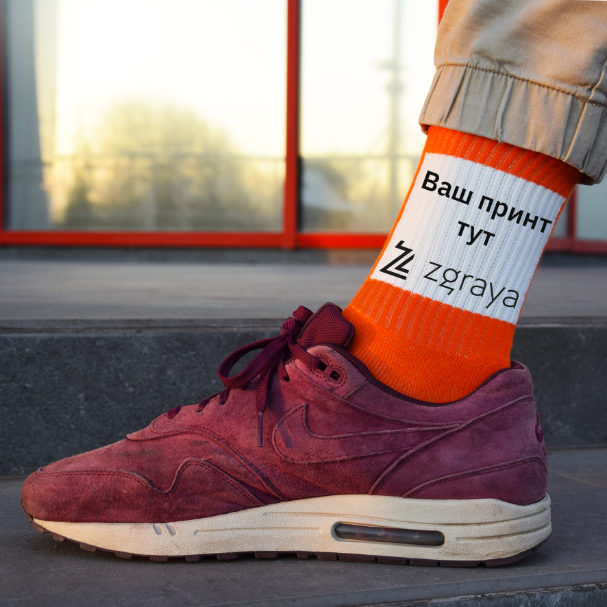 Бавовняні шкарпетки зі спеціальним вікнцем для друку. Принти стійкі до прання. В наявності багато кольорів. Строк виконання 1-3 робочих дні.